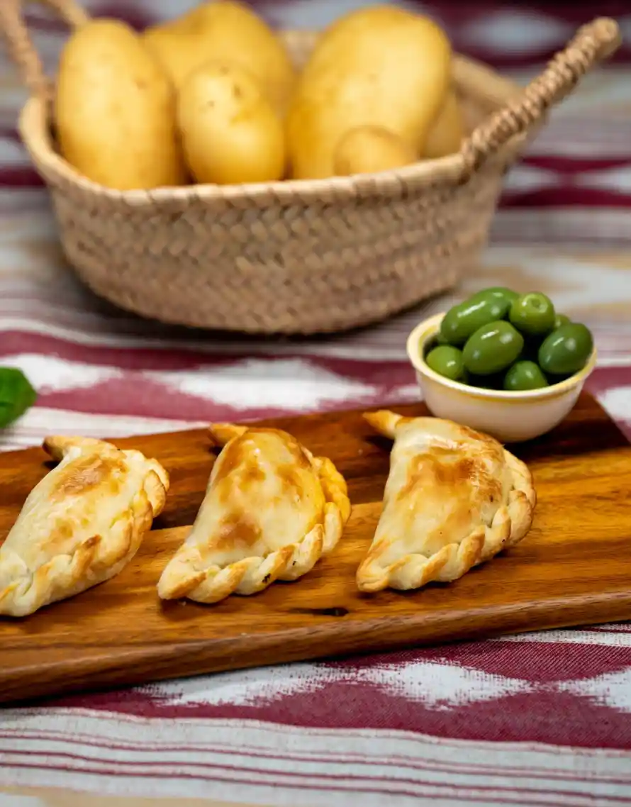 Receta tradicional, masa casera y rellenos auténticos de carne, pollo, jamón y queso o humita.